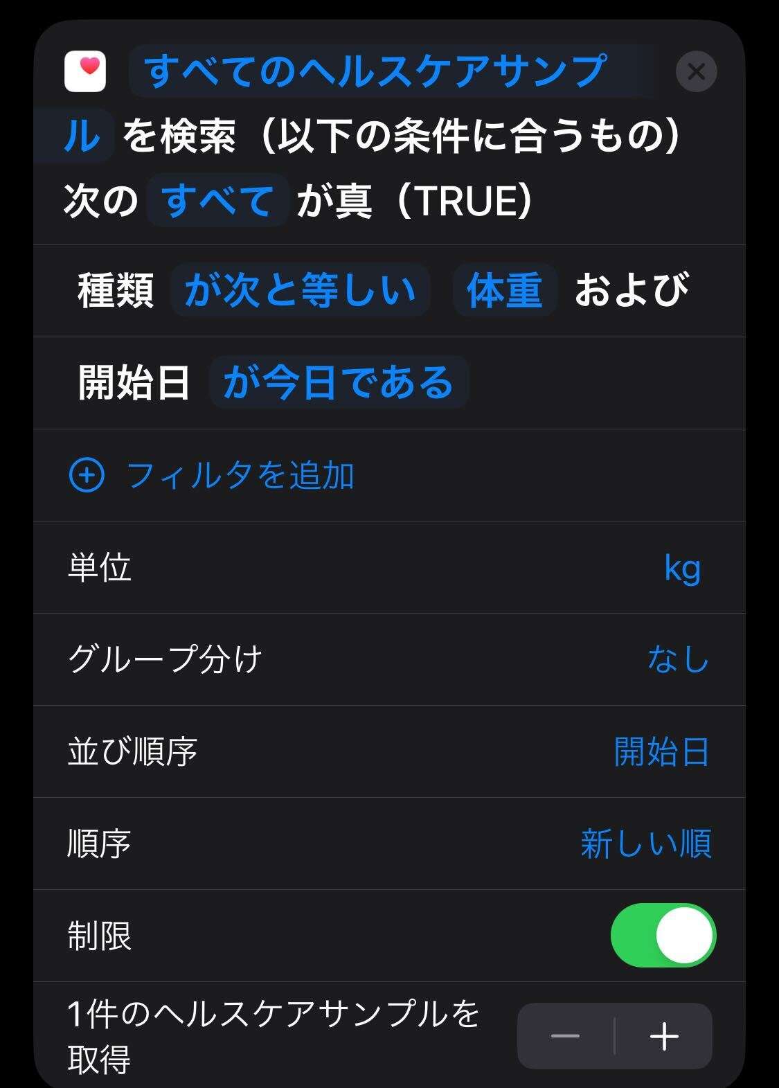 ショートカット:ヘルスケアからデータの取得#