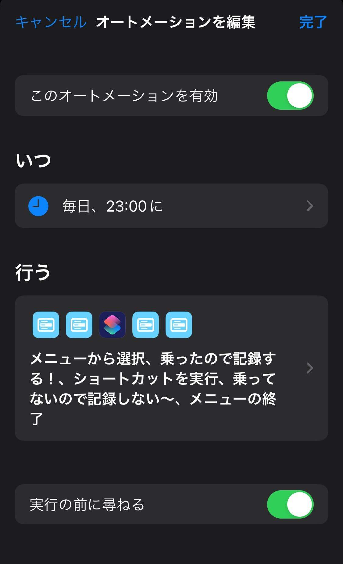 オートメーションを使うとcronのような定期実行ができる上に、Yes/Noのような分岐も入れることができる。