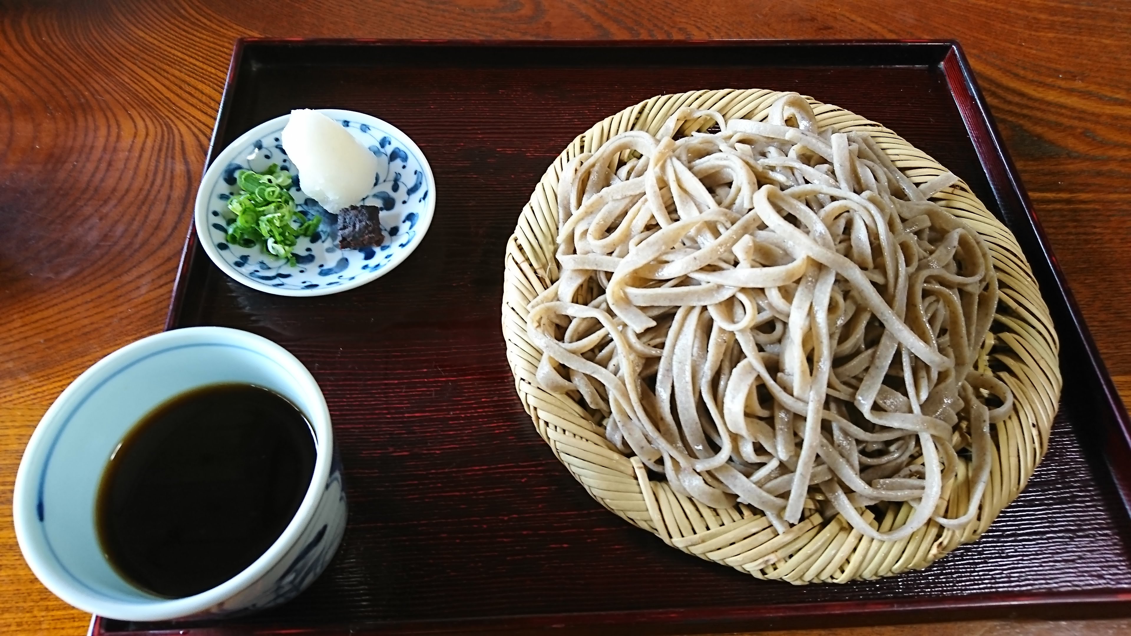 蕎麦ではあまり見かけない平たい麺でとてもコシの強い麺だった。