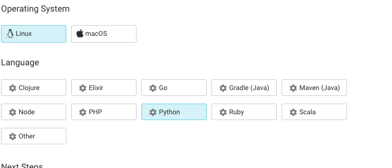 今回やりたいのはansible-lintなので、Linux,pythonを選択して、「Start building」を実行しておく。ただし、ここでは特に実行されない。