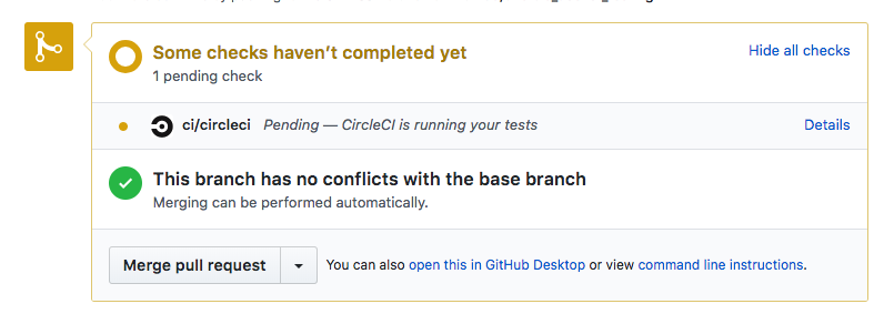 上記ファイルを追加したPRを出してみる。設定が正しければ、下記のようにCIが回りはじめる。
