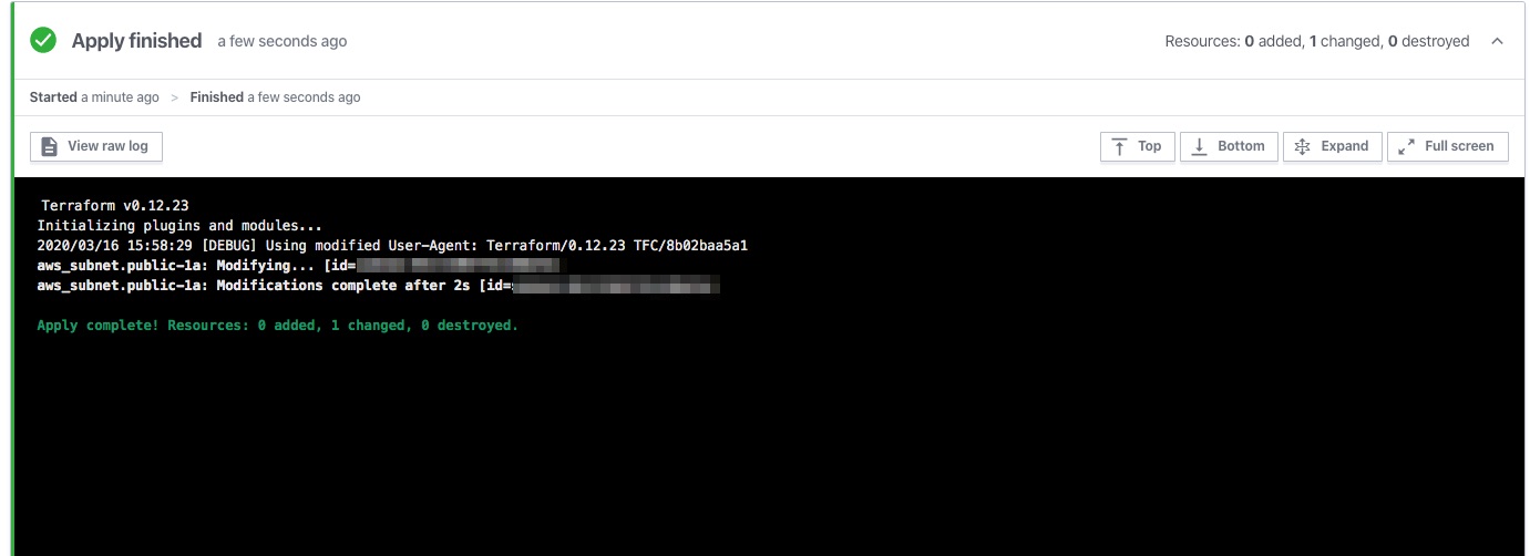 そうするとすぐにApplyが実行されて、結果が確認できます。