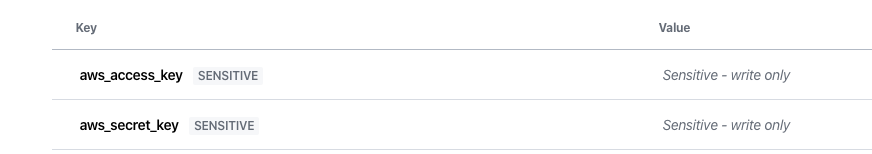 そして、Pushする前にTerraformCloudでAWSのアクセスキーとシークレットアクセスキーを登録します。
