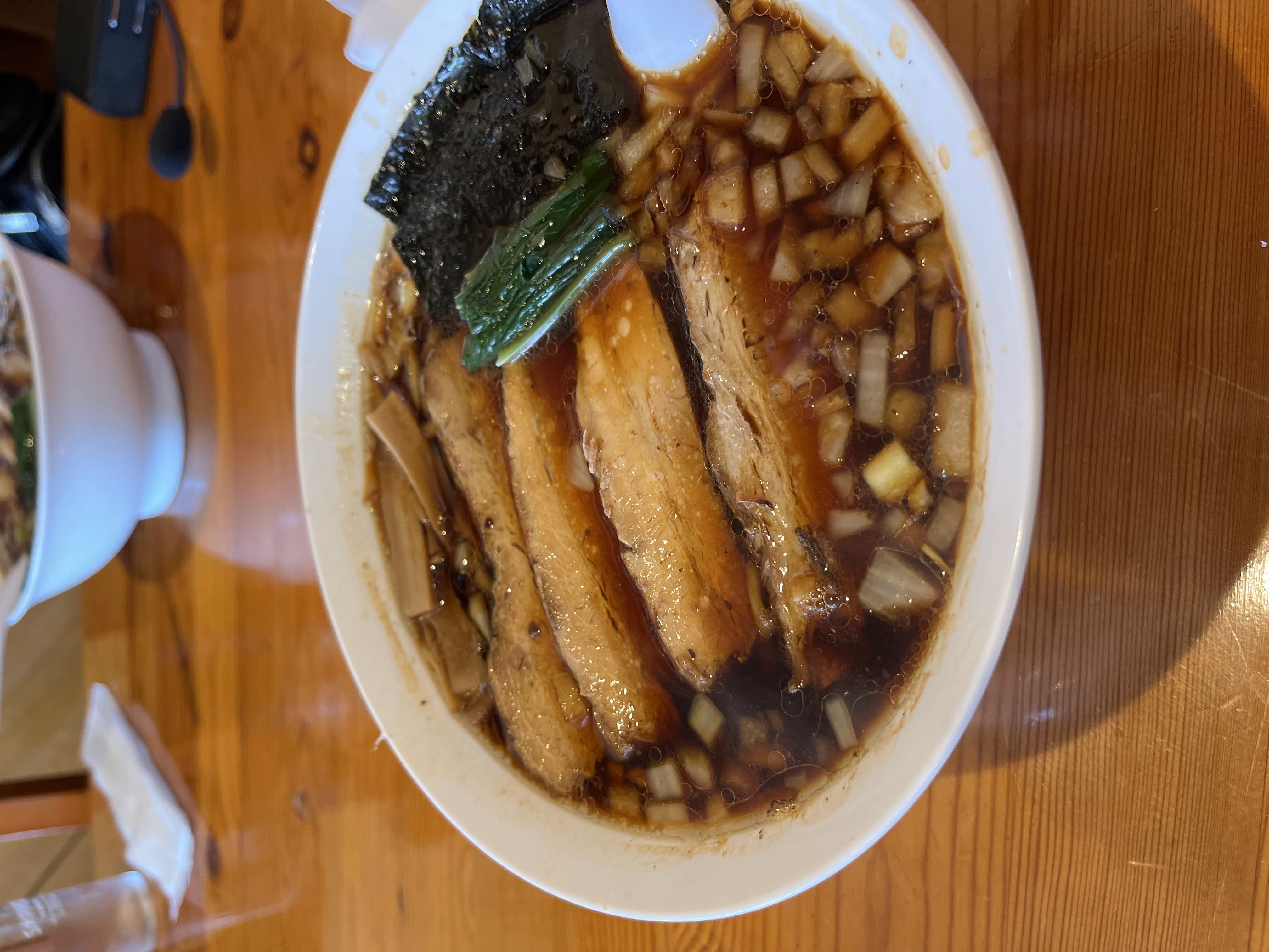 竹岡式ラーメン。3大ラーメンのうち2つを制覇。千葉のラーメンは醤油が多いのかな?何度もスープをすすってしまいました。