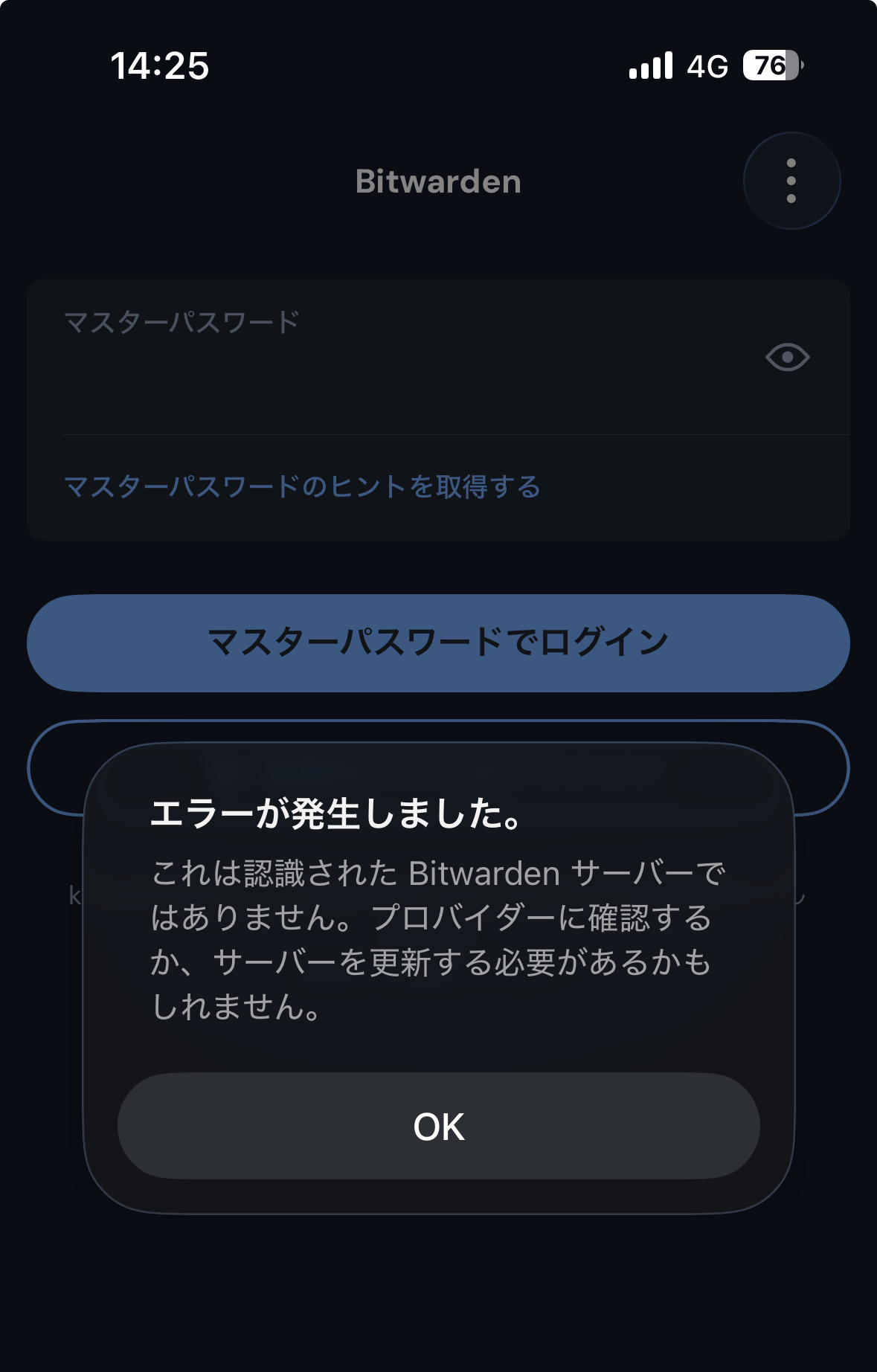あとで分かったのだが、BitwardenアプリがmTLSに対応していなかったのだった。