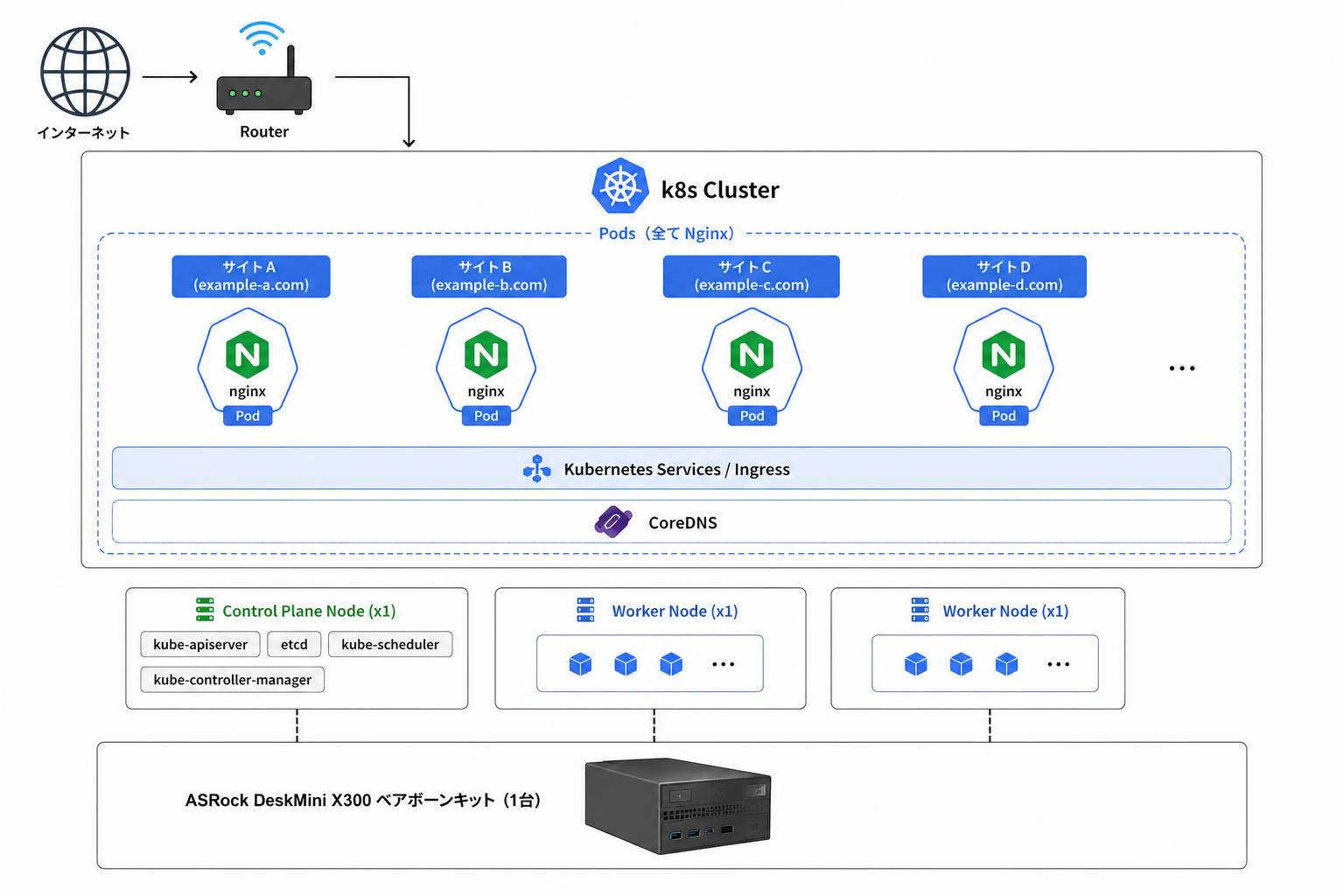 自宅サーバーでk8sクラスターをホストしており、そこですでに数サイト動いている。