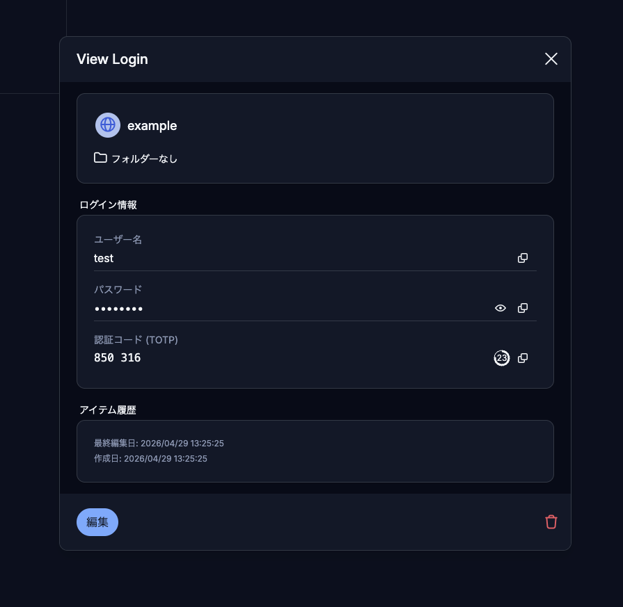 | 種別 | OSS + 公式サービス | OSS(Bitwarden互換サーバ) | OSS(ローカルDB型) |